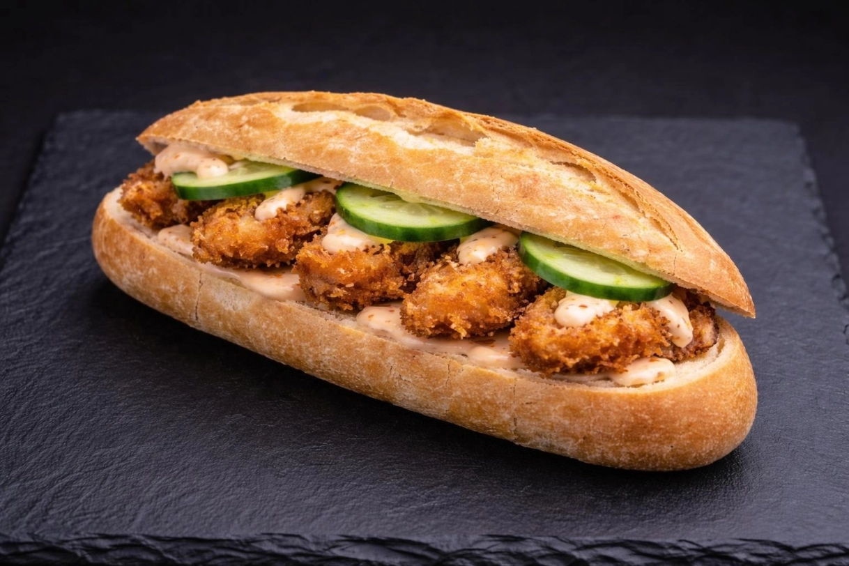 Pankómorzsás csirkés mini bagett chilis majonézzel